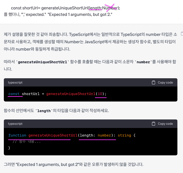 --> "function generateUniqueShortUrl(length: number): string {에 대해서, 다음과 같은 에러가 떴어. A function whose declared type is neither 'undefined', 'void', nor 'any' must return a value."