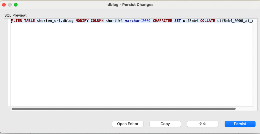 terminal 말고 dBeaver에서도 바로 수정 가능했다. 변경하고 싶은 거를 직접 표에다 하고 'Save' 누르면 아래 창이 뜬다. Persist 하면 반영 된다. mysql에 쳐봐도 반영됨.