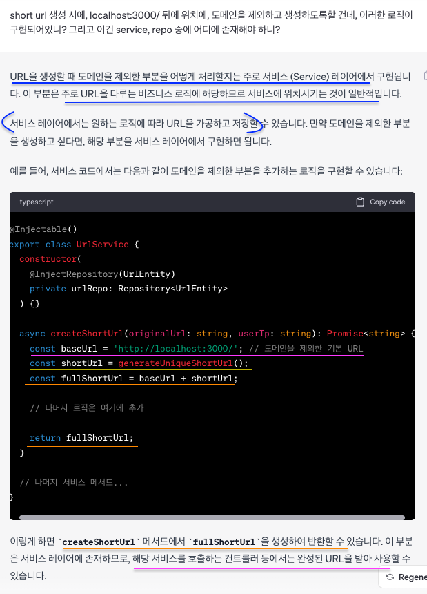 short url 생성 시에, localhost:3000/ 뒤에 위치에, 도메인을 제외하고 생성하도록할 건데, 이러한 로직이 구현되어있니?