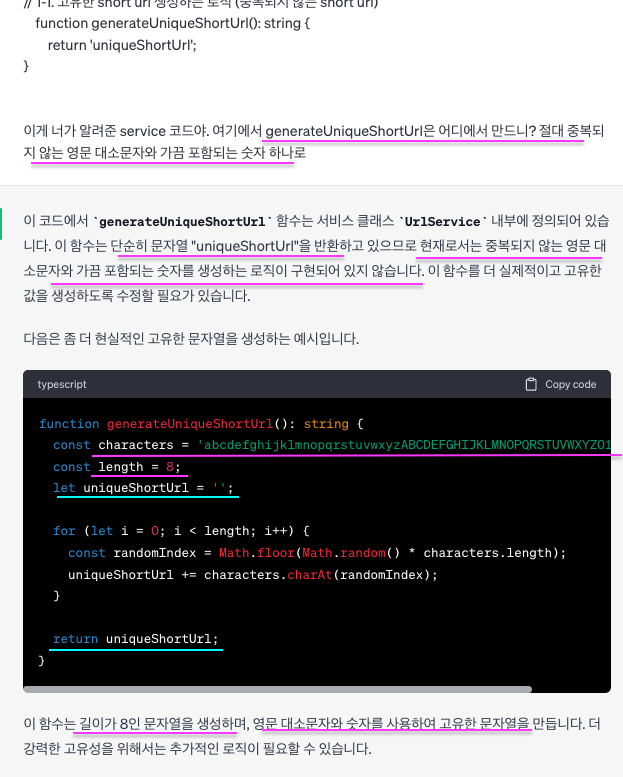 여기에서 generateUniqueShortUrl은 어디에서 만드니? 절대 중복되지 않는 영문 대소문자와 가끔 포함되는 숫자 하나로