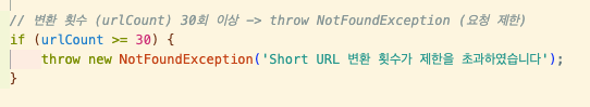 에러 핸들링 : user ip 로 하루 30회 short url 변환 가능