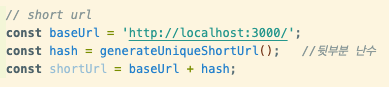 - 뒷부분 hash를 난수라는 뜻으로, 우리가 만들 그 shortUrl 을 일컫는다