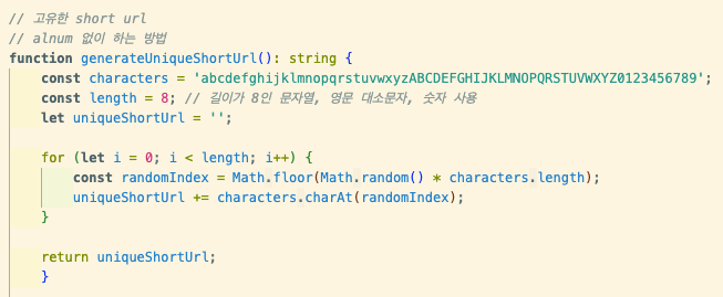 그래서 generateUniqueShortUrl라는 함수를 hash 변수에 넣는다.