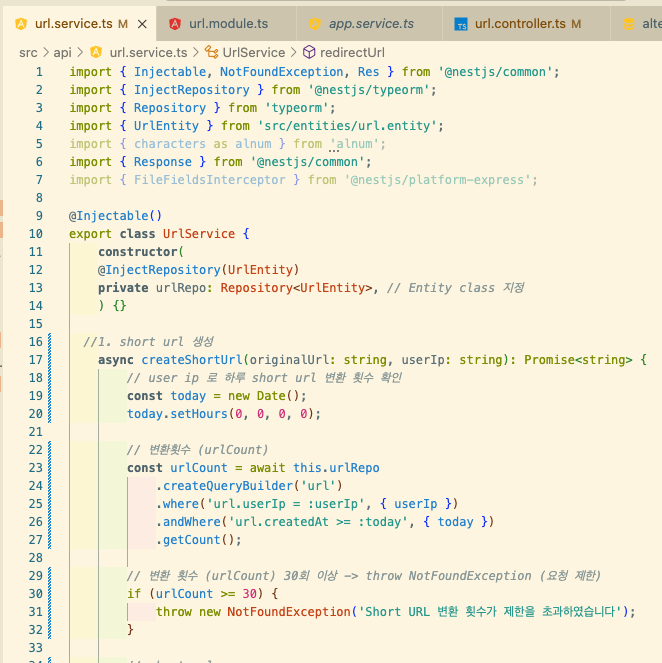 기업협업 2번째 프로젝트- 4일차 shorturl 생성 기능 api 작성 (service 추가,repository)+ 에러 모음 (0) | 2023.11.09 |