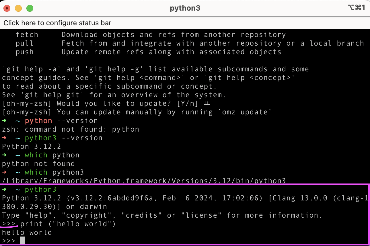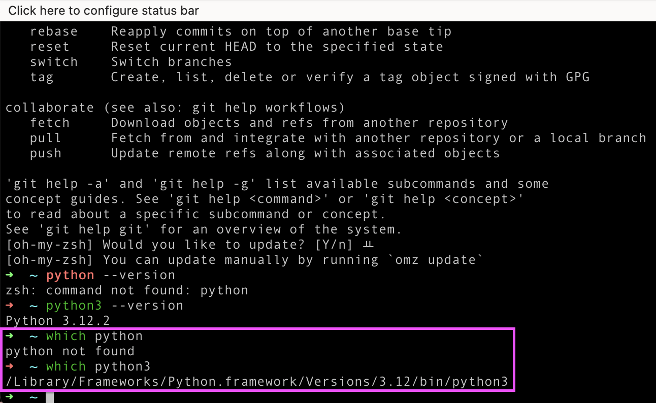 파이썬이 어디에 잘 저장되어 있는지 확인