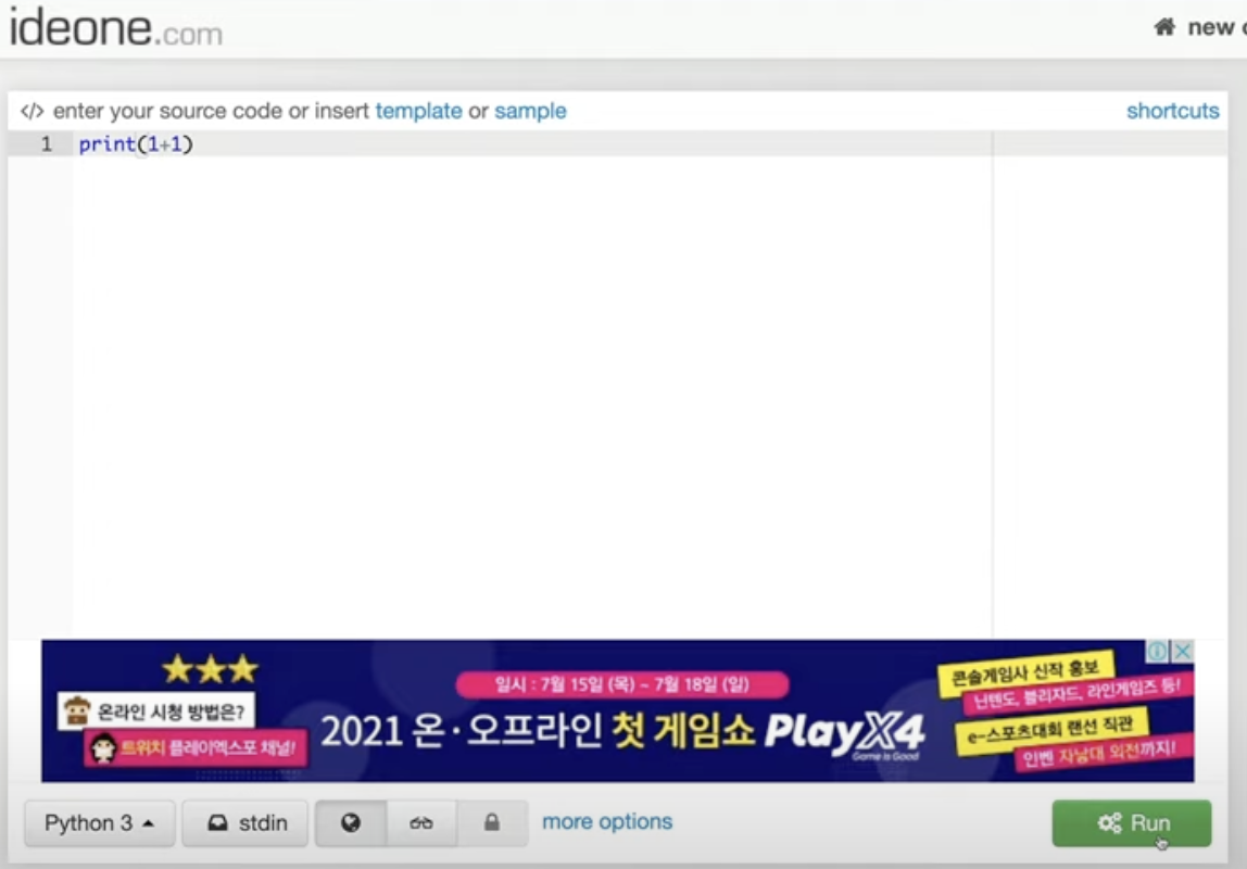 python 설치를 하지 않고도 파이썬 실행하는 방법도 있다.