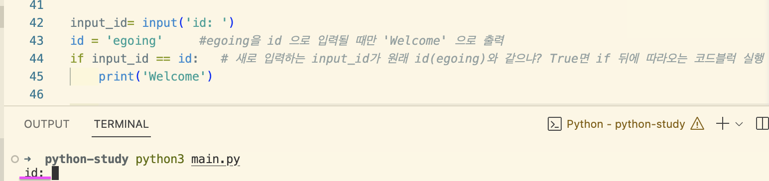 egoing을 id 으로 입력될 때만 'Welcome' 으로 출력
