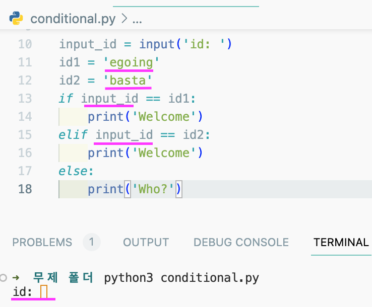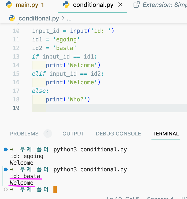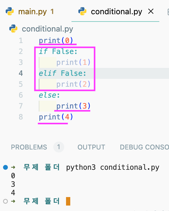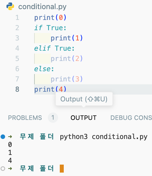 python3 conditional.py으로 실행을 시키고,
