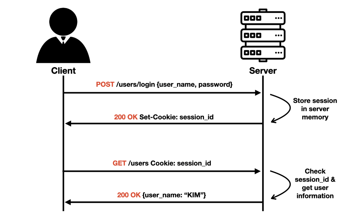 - 클라이언트 request를 보낼 때 해당 session id를 함꼐 보냄으로써, 클라이언트의 상태를 확인