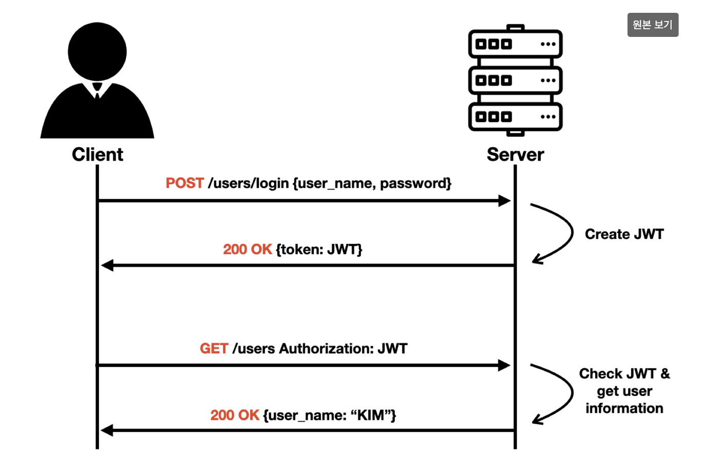 - 서버는 사용자로부터 전달받은 Token 정보를 Verification 한 뒤, 해당 유저에 권한을 인가 (= 아까 근 사람, 맞네, 원하는거 다 들어줄게, 암행어사 마패 인증)