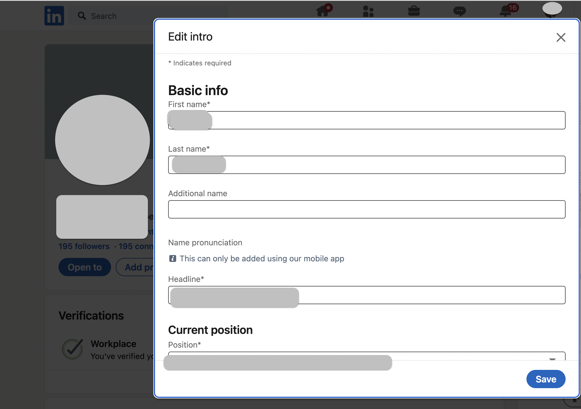 update profile name 버튼 클릭하니.. 바로 linkedin 페이지 접속!