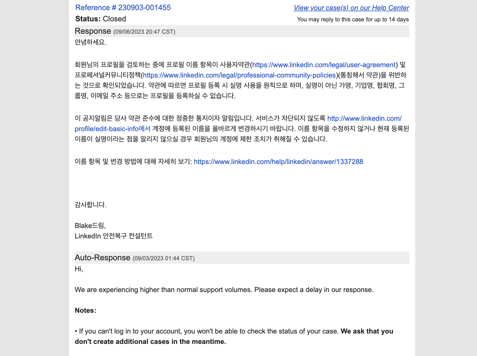이번엔 한국어로 답변 와서 그나마 대화를 좀 할 수 있겠구나 (한국분들은 더 친절하니.. 답변도 잘 주시고.. 외국은 불친절..)