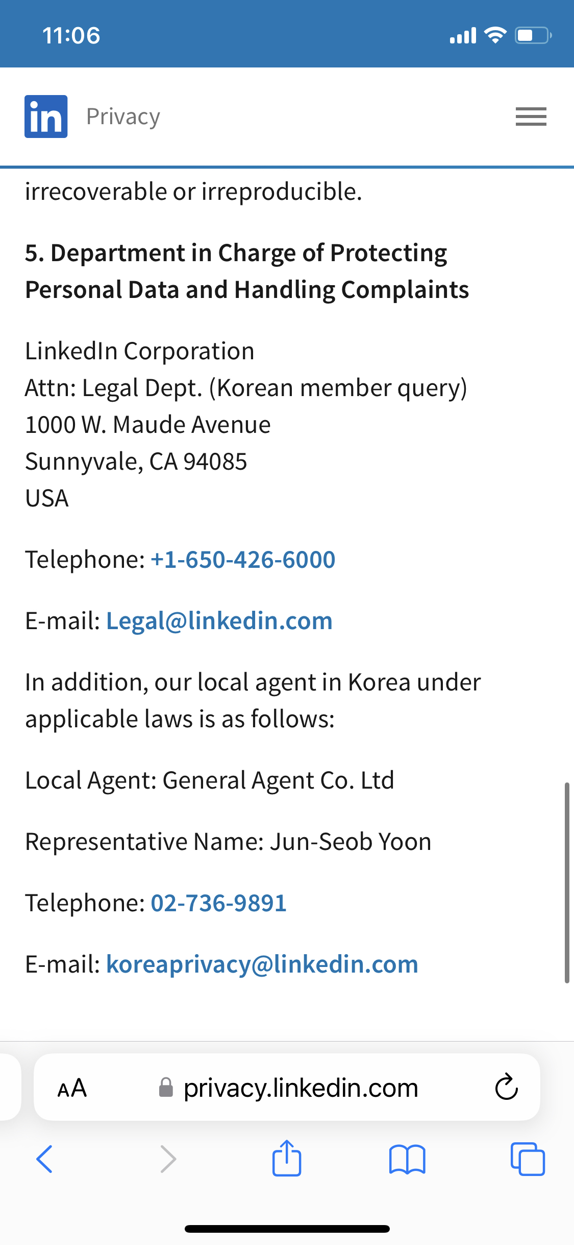 This Privacy Policy Addendum for users in Korea (the “Addendum”) provides additional disclosures required by local data protection law. This Addendum should be read in conjunction with the Privacy Policy, to describe LinkedIn’s practices regarding