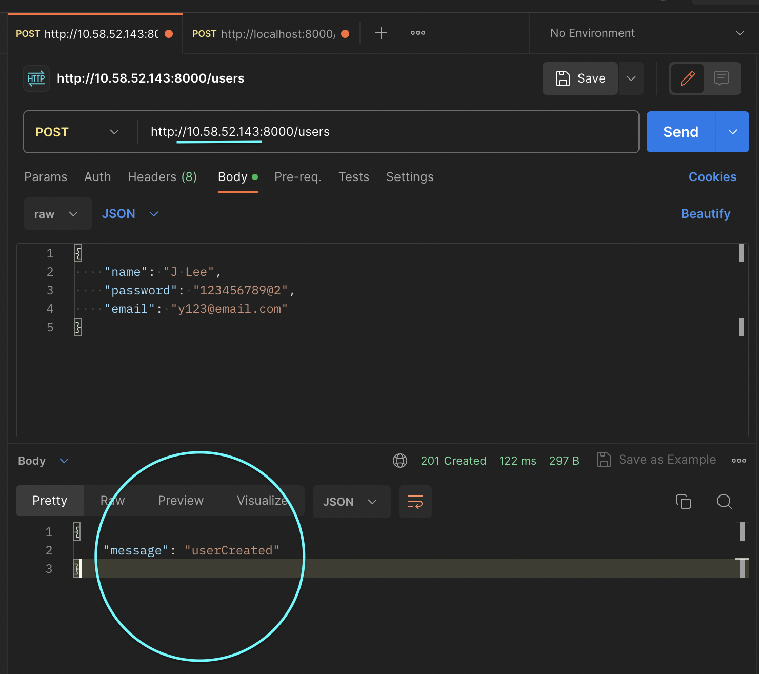 그리고 /users라는 내가 설정한 url 알려주기 (다른 백엔드들과 같이 한명의 프론트엔드 컴퓨터에서 회원가입해봣는데,