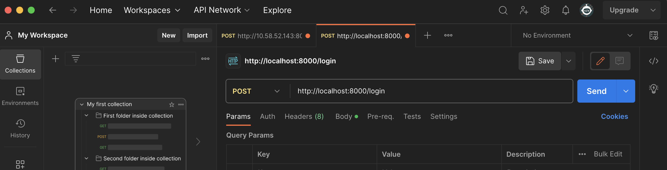http://localhost:8000/login 과 같은 주소를 치면 됐다