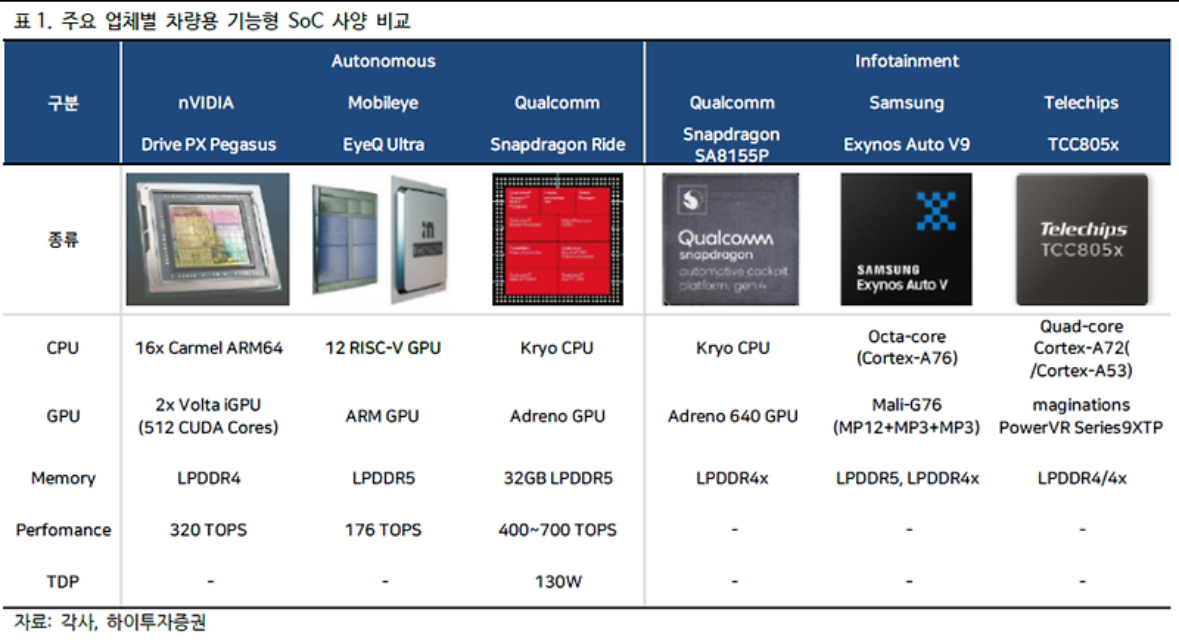 자율주행에서 nvidia, 헤일로, ti, 퀄컴, 르네사스, intel 역할