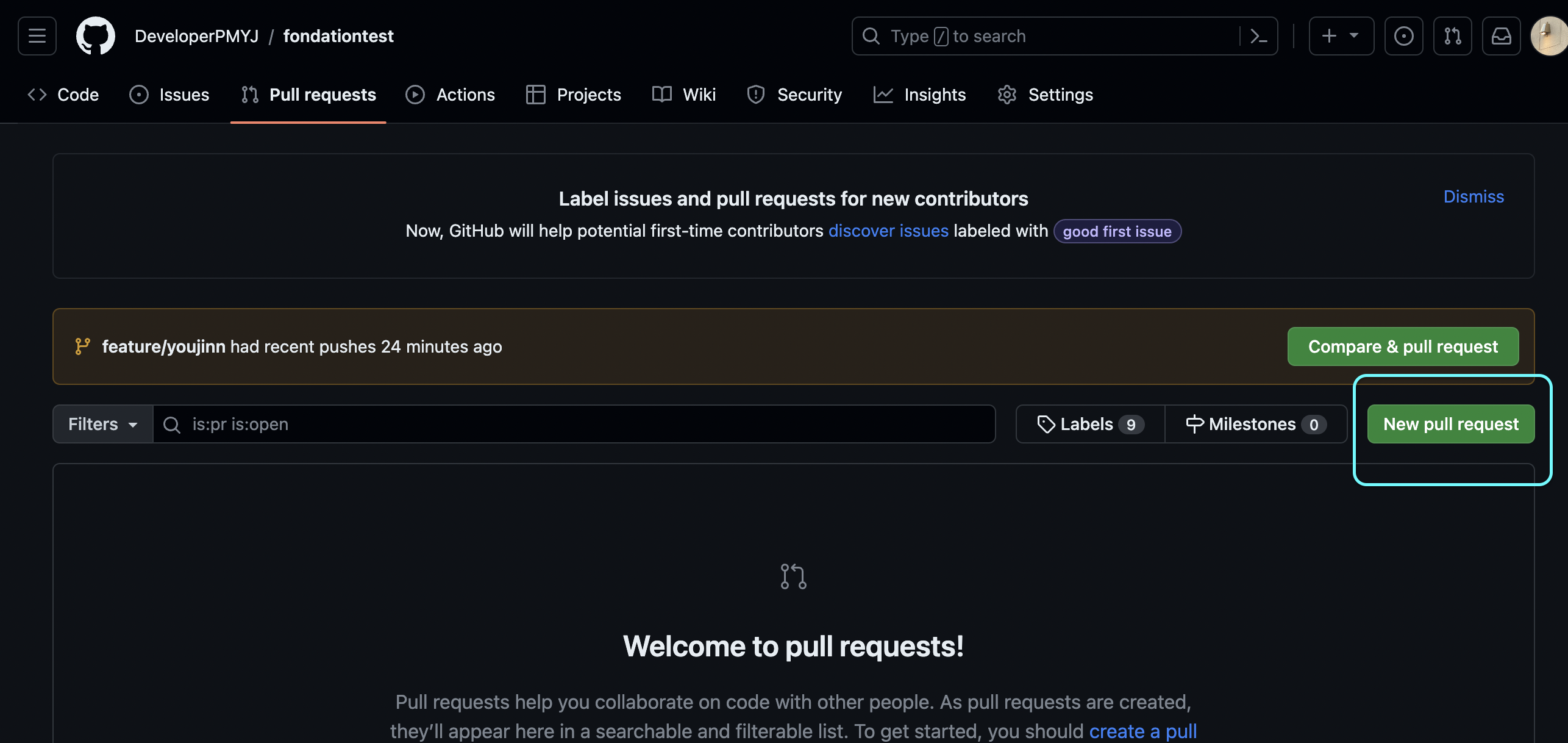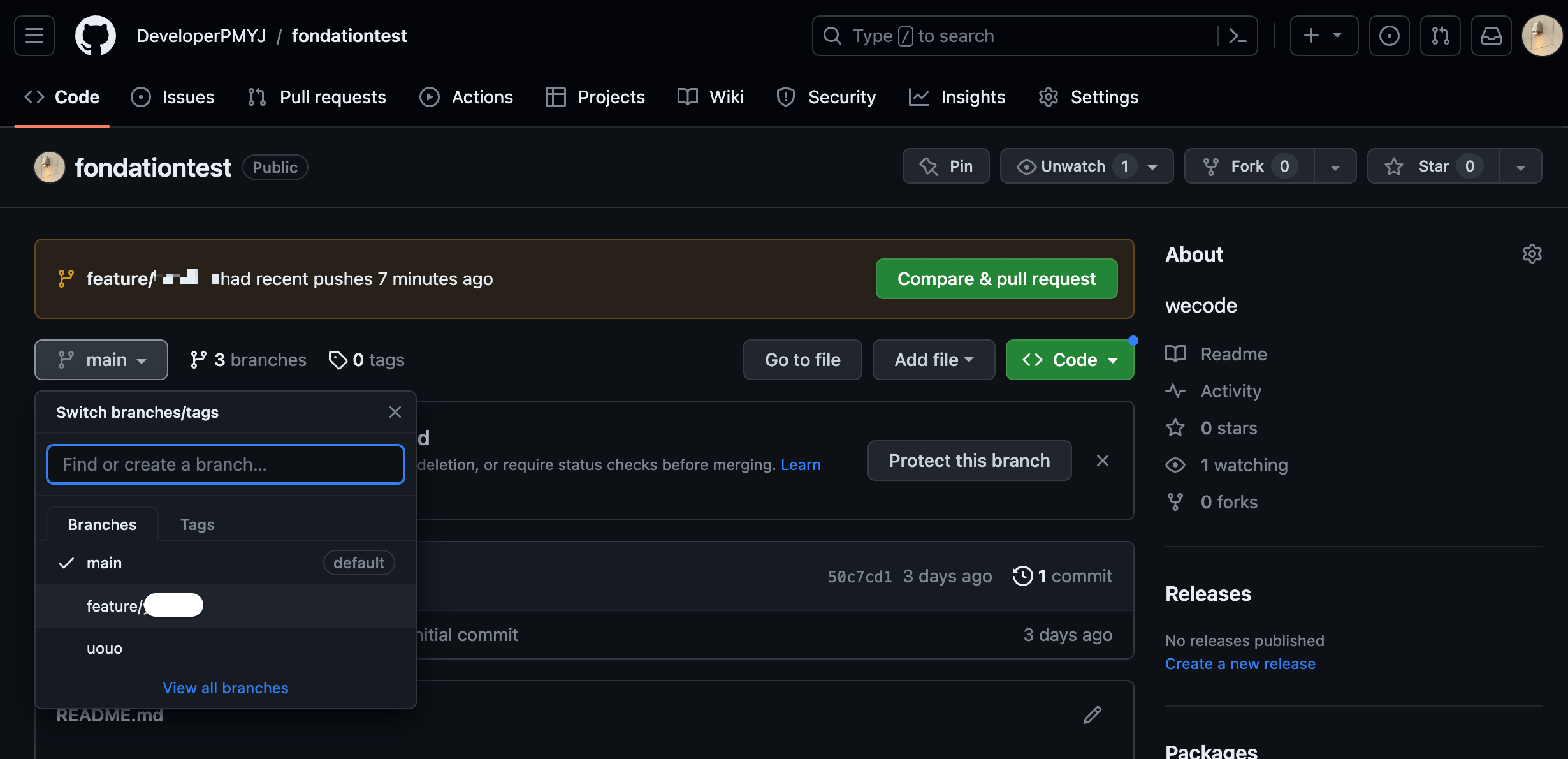 3. 깃허브에서 repository pr 만들고 올리고 main branch에 merge되고
