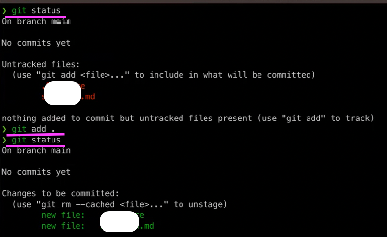 git add . 후에 잘 올라갔는지 확인하려고 git status를 찍고나면