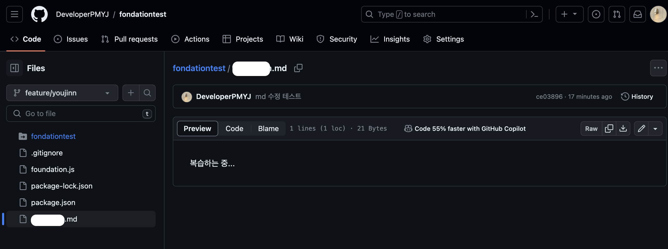 이후에도 깃허브에 새로고침해도 안 나와서 git push origin [.md] 도 해봤는데 안 되길래