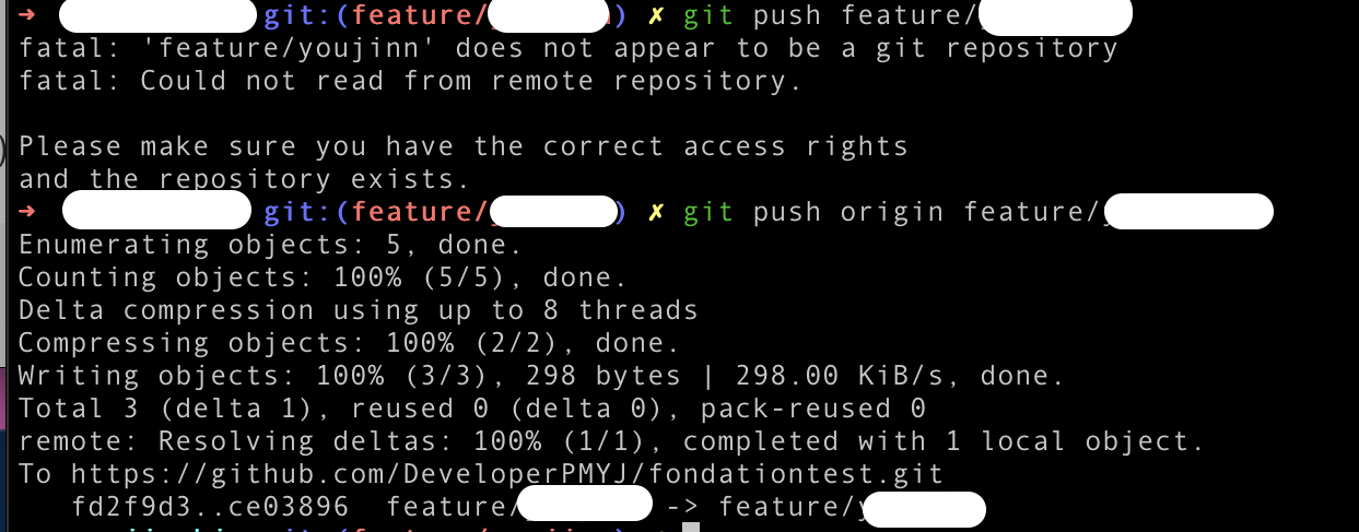 == 내 remote 공간에 feature/[ ]를 만들어주는 것