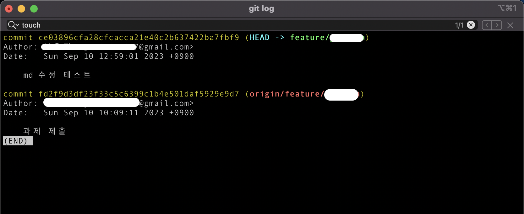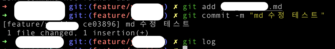 2. (선택) git branch로 확인 (들어가보면, 내 위치가 'feature/[이름]'으로 됨, q로 나오고)