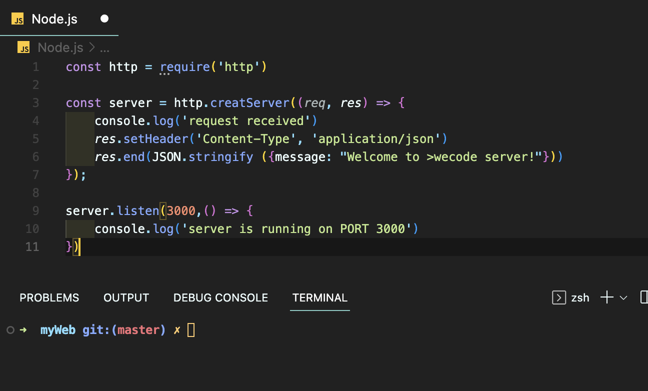{message: "Welcome to >wecode server! Http server without express"}))