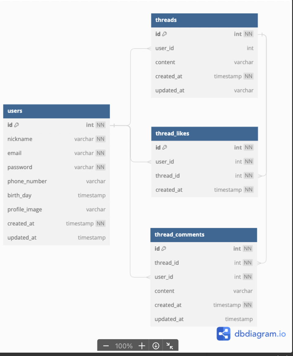 ///우리는 posts대신 threads를 썼다.