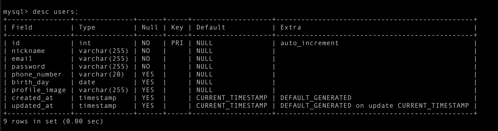 그래서 우리는 updateAT과 혹시 모를 추가 기능 구현을 위해, profileimage birthday phonenumber와 같은 기능을 더 넣었다. )