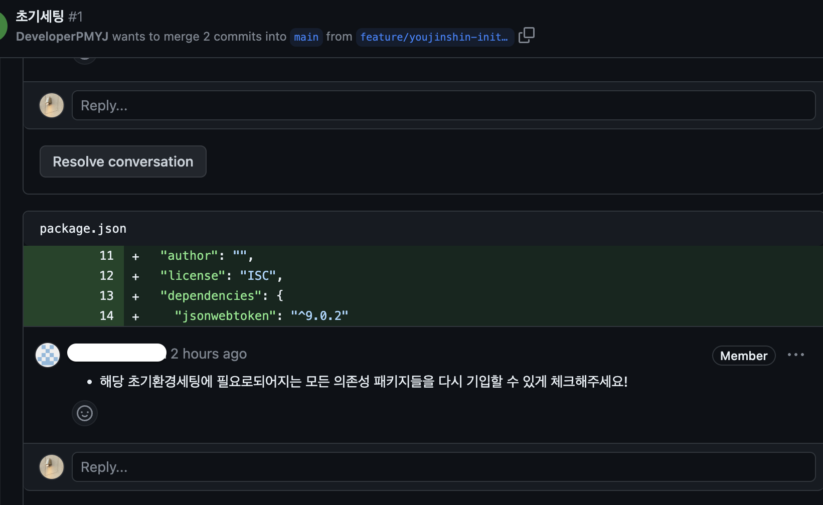 설치 후엔 package.json에 무조건 들어왔는지 확인하면서!