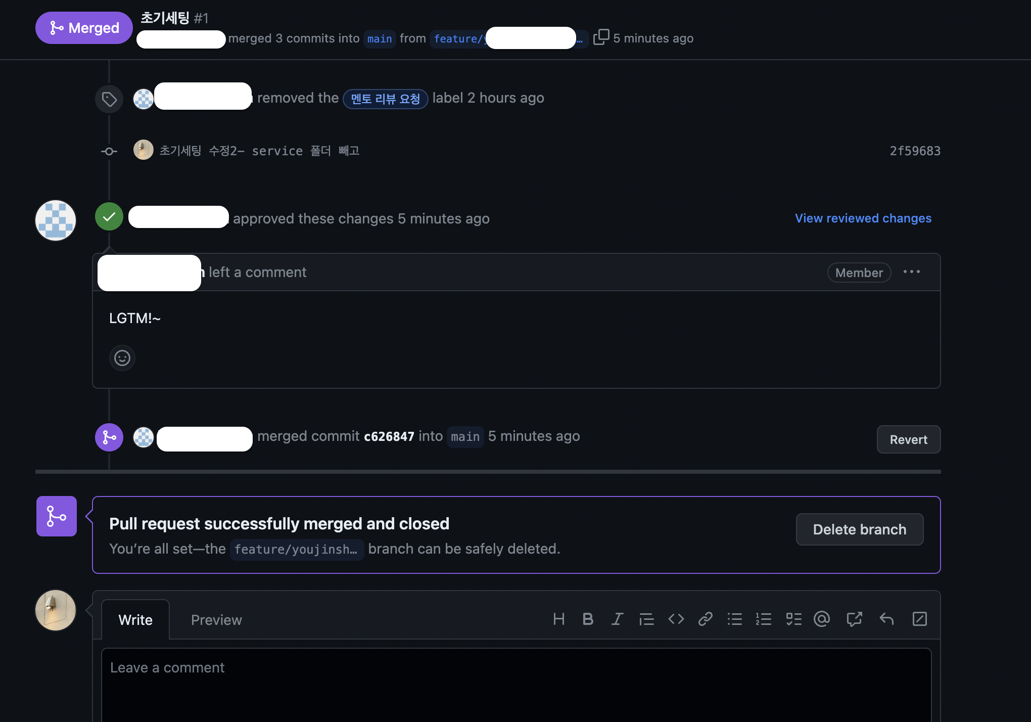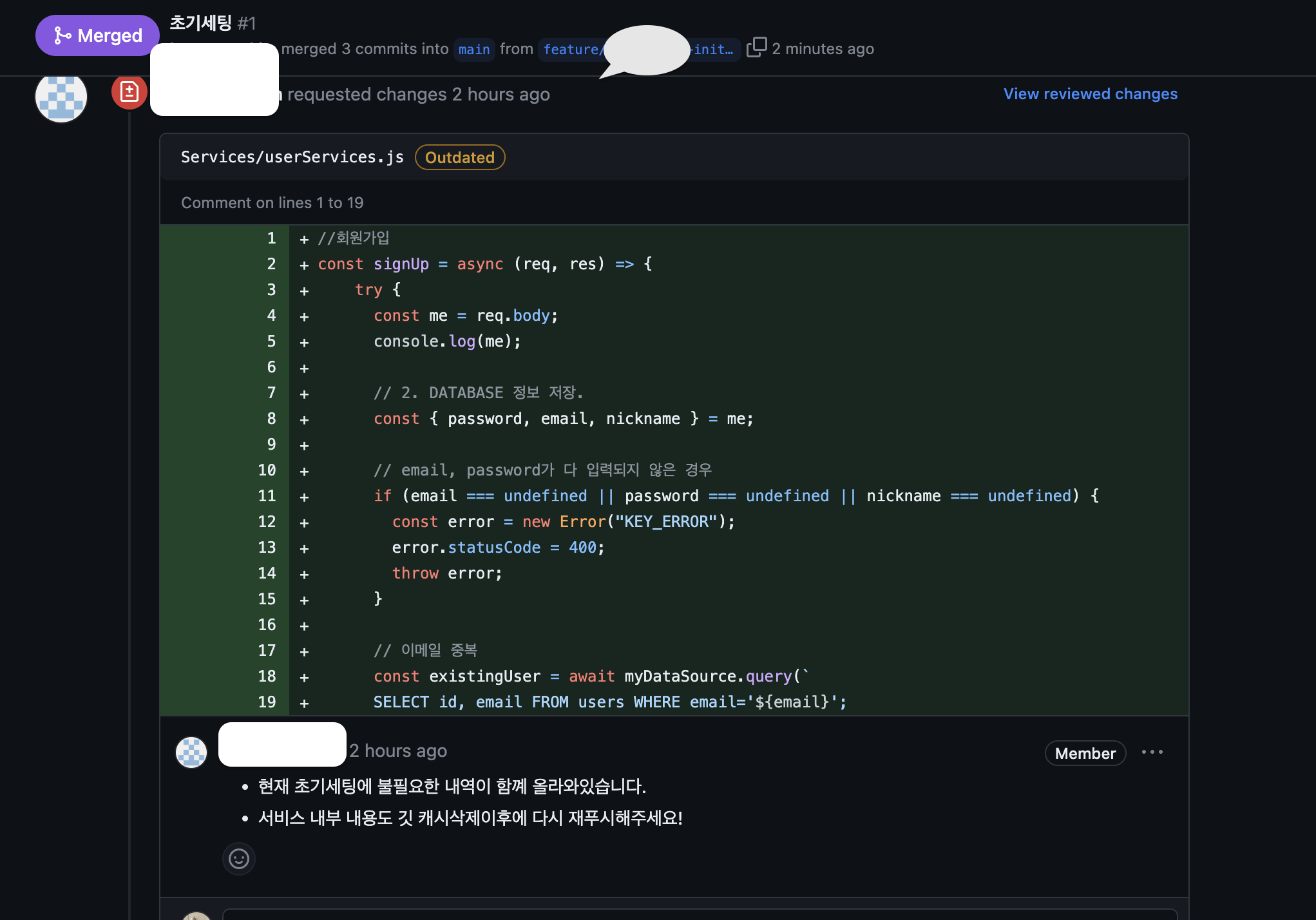 Project1- 1. 초기세팅 PR 후 commit (1)