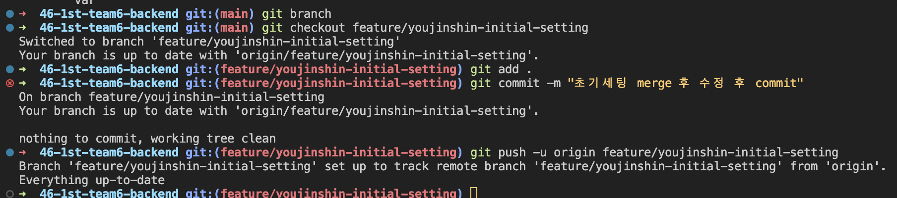 pull 받고나서, 이미 있는 초기화 branch에서 수정 후, 다시 commit/push 하면 됨