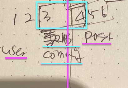 엄마 branch (user service) 에 연결된, 자식 branch (post service)가 있다.