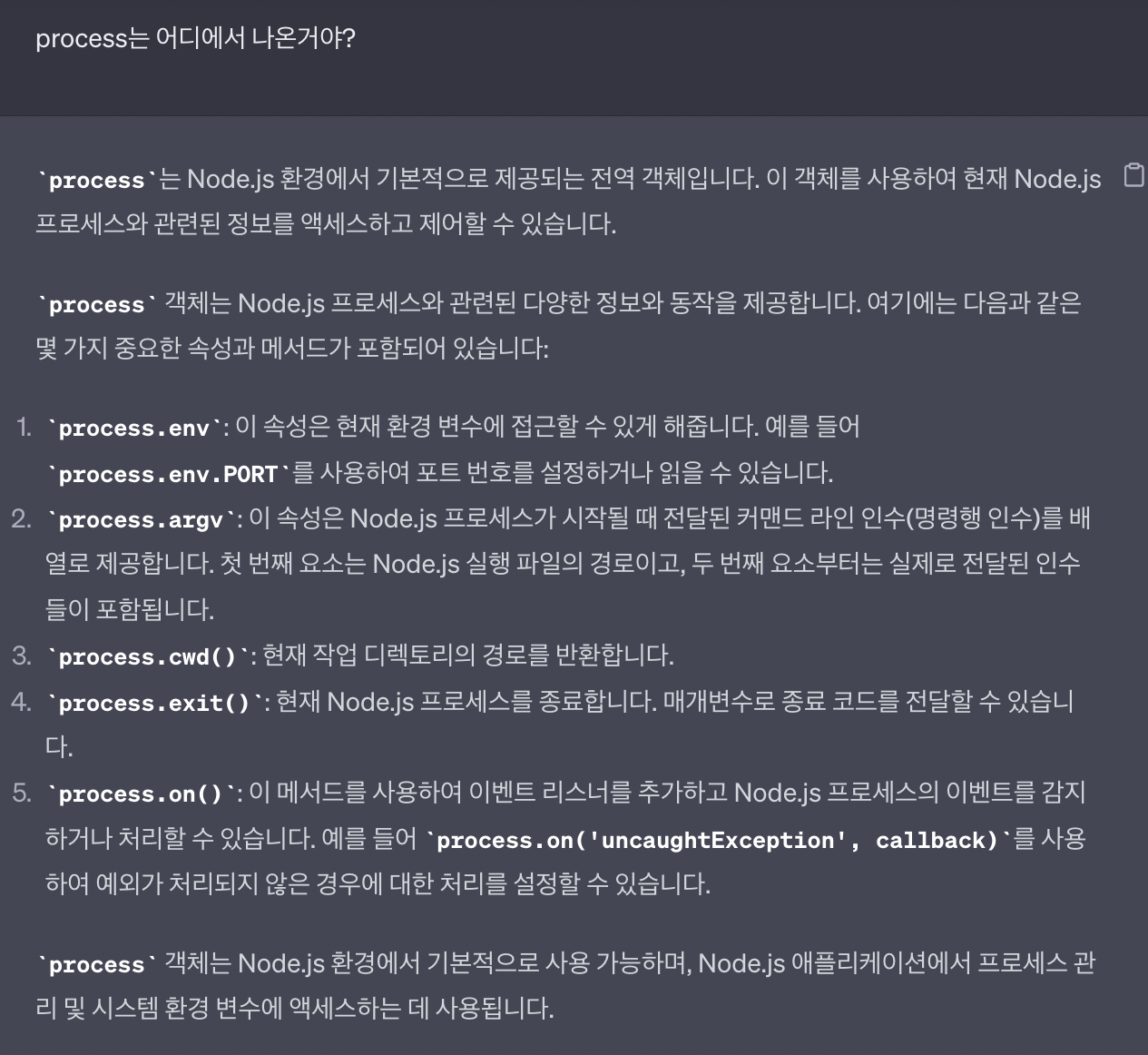 자꾸 나오는 process 에 대해 물어봄. 어디에서 나온 건지.
