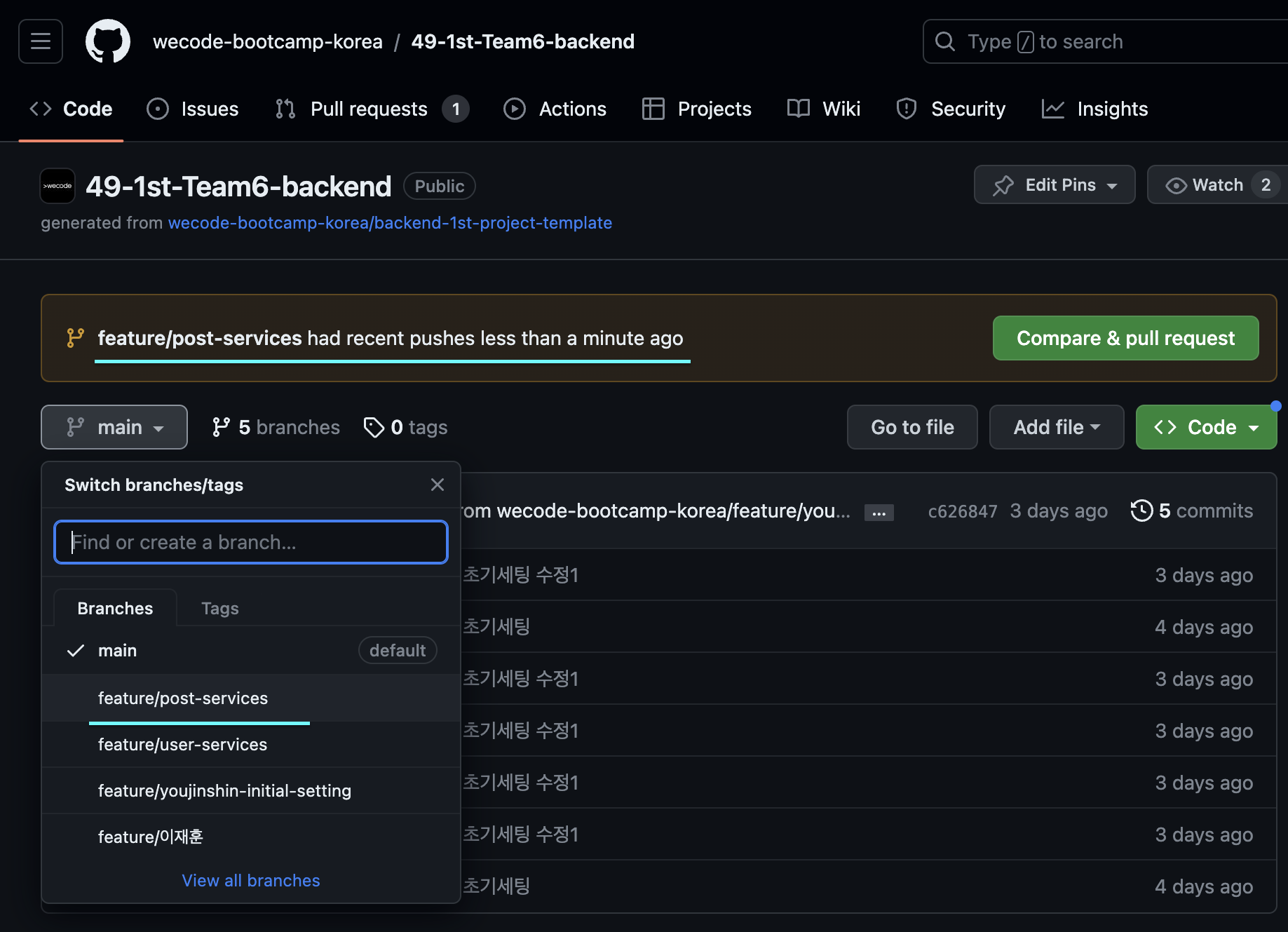 Project1- 1. 초기세팅 PR 후 commit (2)