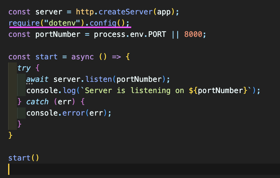 server.listen 함수를 호출하기 전에 start() 함수를 실행해야 하기에