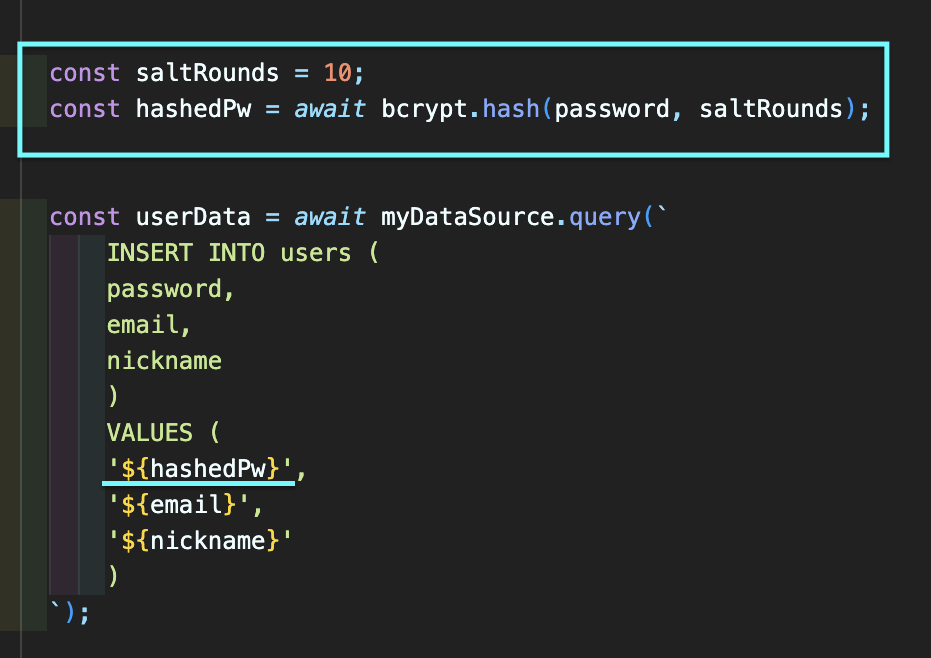 Project 1- 5일차: 통신 완료! 마지막날 통신 하기 전에 실수 1. datasource 를 잘못 정의 했다. 2. 회원가입을 하고 나서, 토큰이 안 돼서 알고보니, 해쉬 함수가 로그인 함수에만 들어가는게 아니라, 회