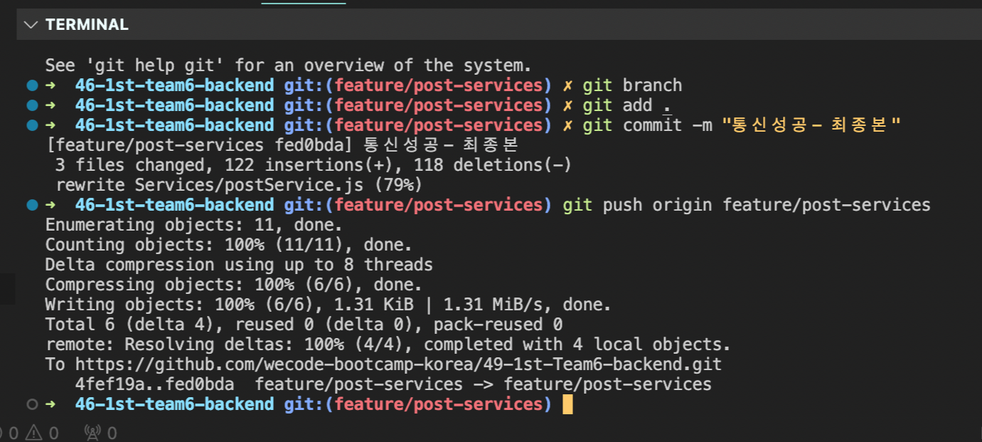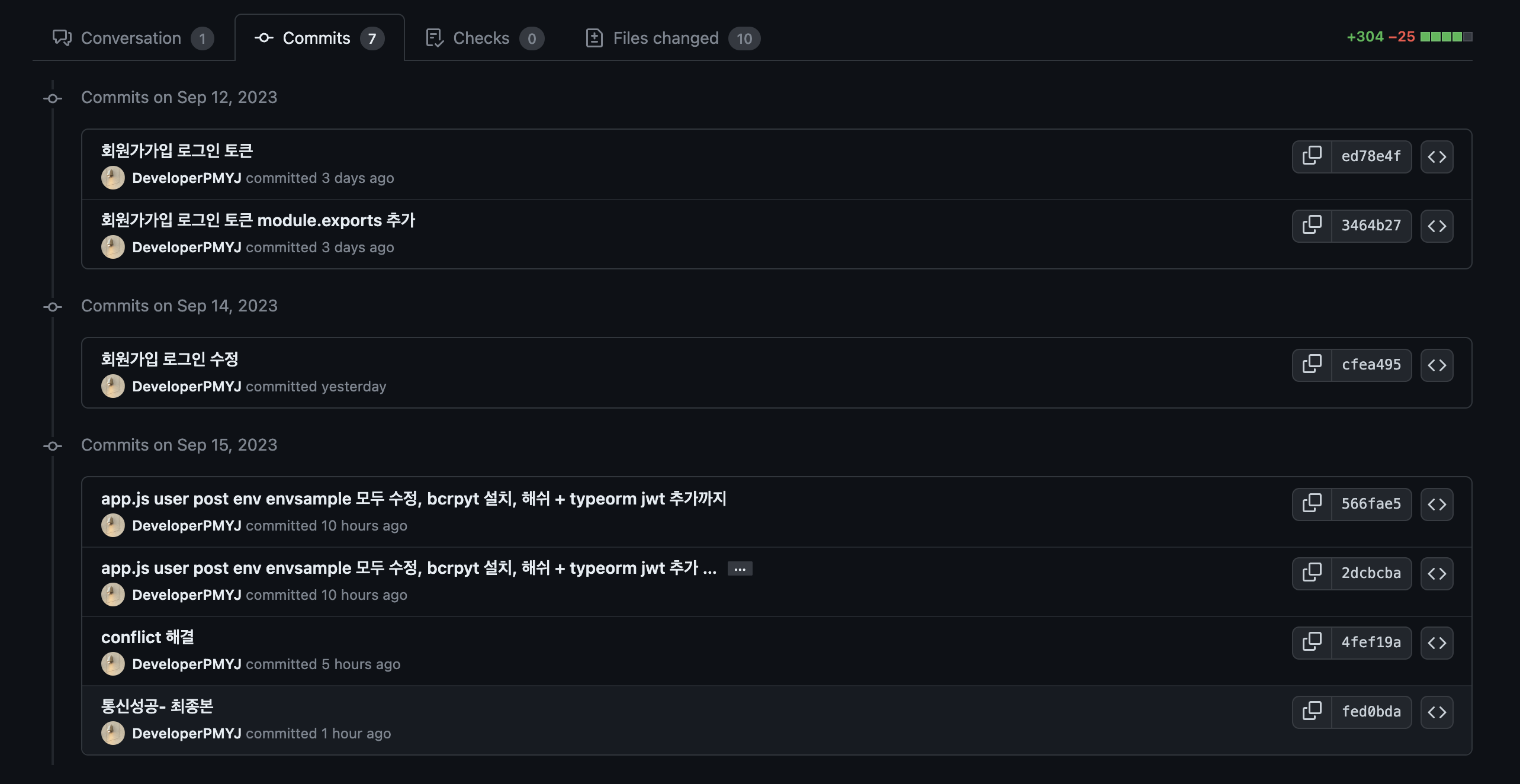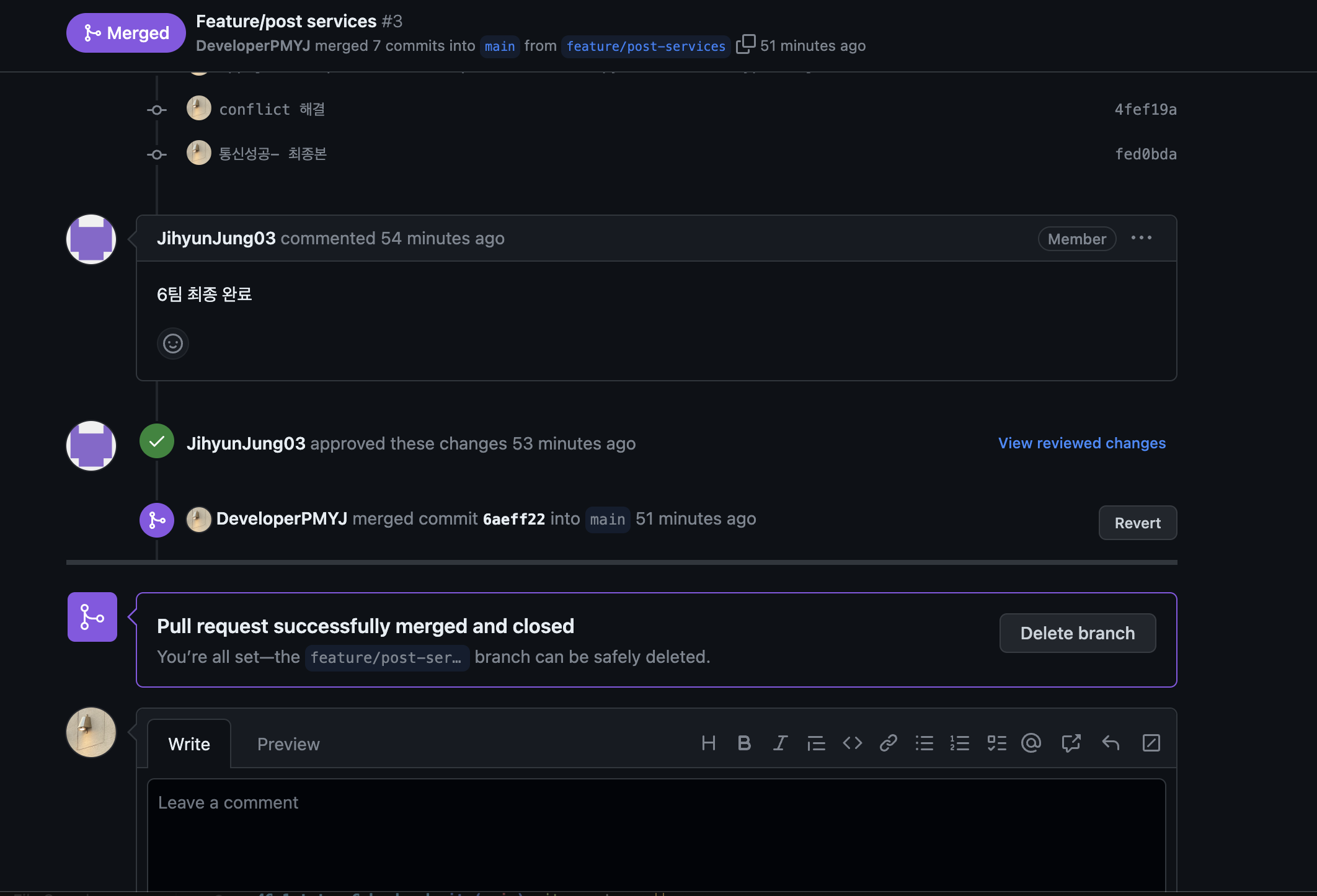 프로젝트 끝나고 일단 통신 과정에 대한 정리를 했다. 정리한 내용은, - 통신 전 수정한 코드 - 통신 과정 기록 - 통신 후 깃허브에 push, pull request review, merge 기록 그리고, 나의 개인 깃허브 repositor