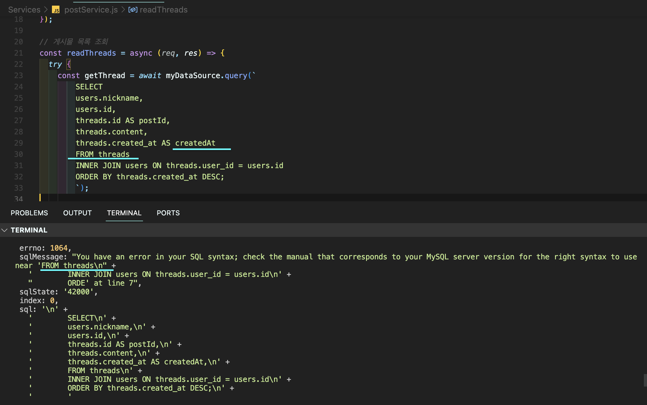 3. 쿼리 문법 실수: From 앞에 쉼표 못 쓰는, sql 구문