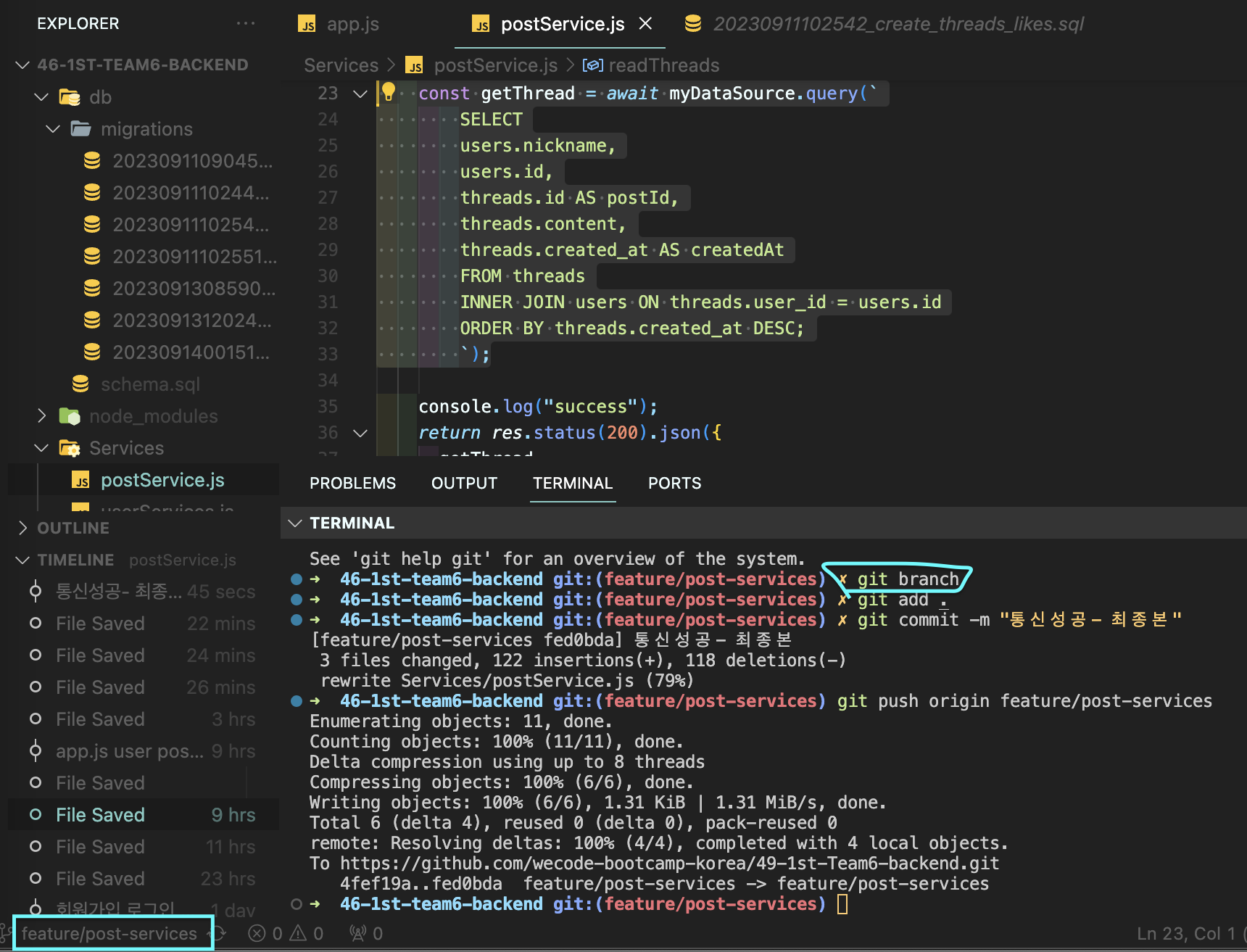 git branch 해보면 안다. (굳이 위로 스크롤 많이 안 해도 됨)
