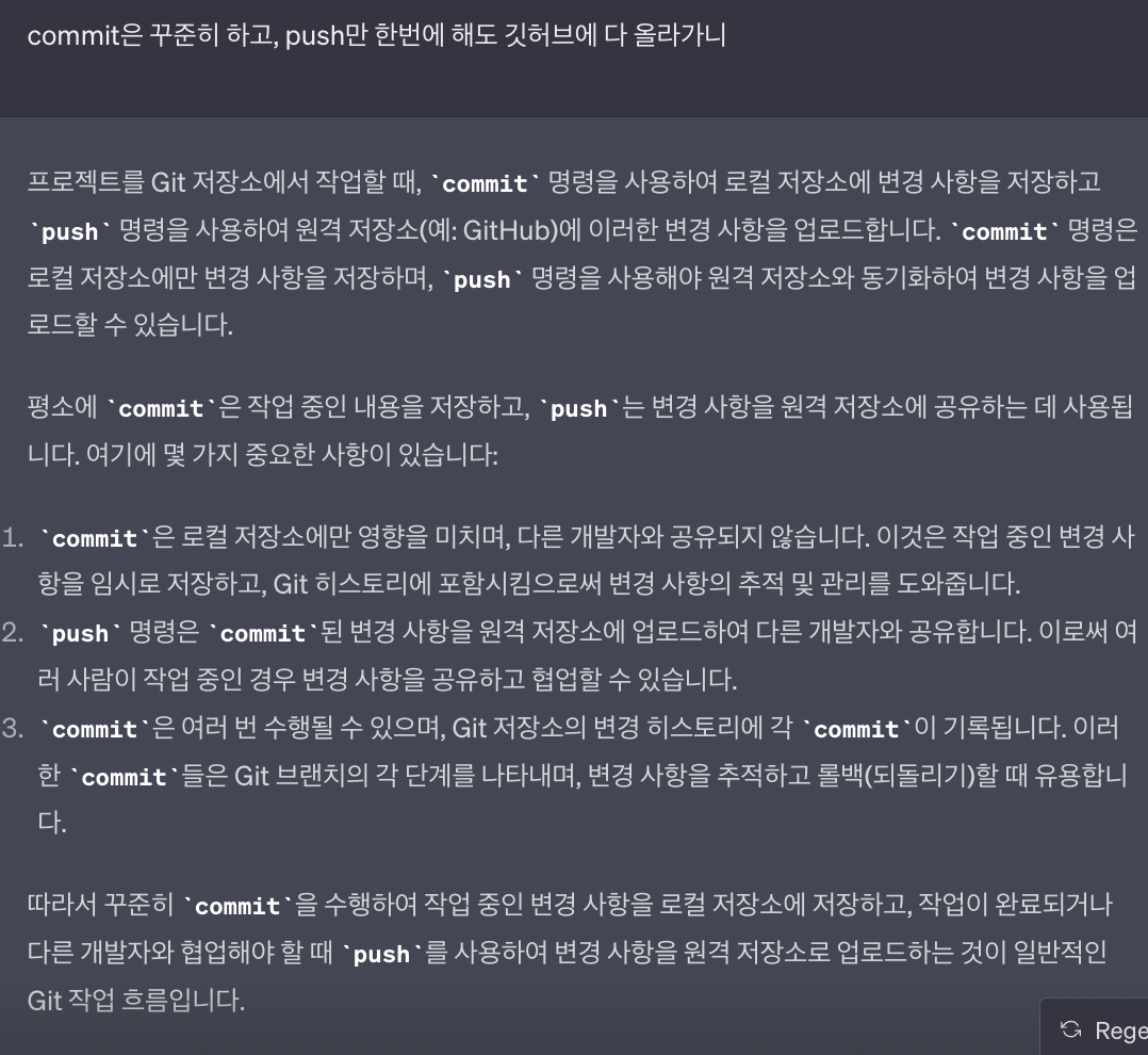 실험해봤는데, 정말 그랬다 로컬에서 commit 후 새로고침 해도 remote에는 commit 숫자가 안 올라간다 깃허브는commit이 많다는게 고수 느낌이 나서 열심히 commit push 해야겠다 i 누르면 insert 나옴 i 한번 더 눌러서 수정 후 저장 후 나오려면 :wq 그리고나서 새로고침하니, 새로운 branch가 push 되었다고 올라오고, main에 merge도 가능해졌다 create pull request 버튼을 누르니, 이게 나오고, 버튼 그대로 누르면 됨. 그러면 이런 화면 나오고, 아래로 스크롤하면 merge pull request 누르면 아래 화면이 나와서 comfirm merge 하면 되고, 사진과 같이, commit 내역 내용 중에 postServices.js 였던 게 pos..