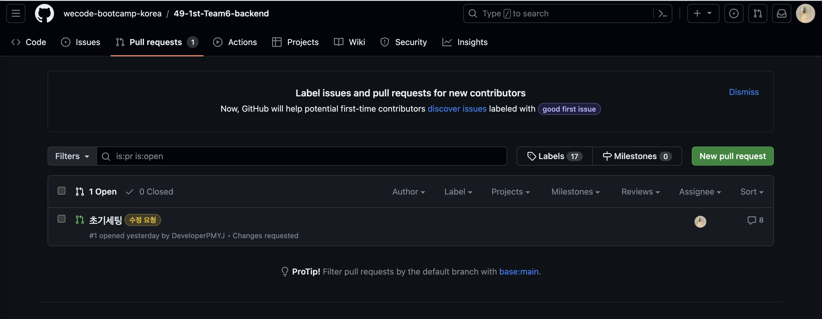 이튿날: 대략적으로 한 것 어제 초기화 세팅을 완료, push 후 pr 했던 https://pm-developer-justdoit.tistory.com/85 초기화 세팅 pr 리뷰 및 commit, close , main에 merge와 로그인, 회원가입 함수를 담은 'userservices' branch 깃허브에 추가 생성 후, push, pr 요청까지 하였다. pr 리뷰 처음 해보았다. 주말에 foundation test로 깃허브 복습과 깃허브에 branch 생성 후 clone, push 하는 거까지는 했었다. Project1- 1. 초기세팅 PR 후 commit (1) --------------------- npm install express 하고나서는, 계속 npm install mysql mysq..